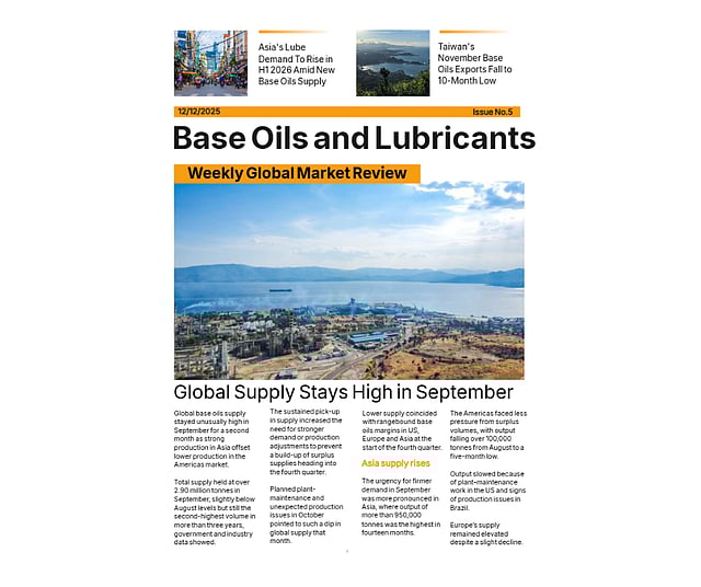 Global: Global base oils surplus narrows in September as demand growth outpaces supply.