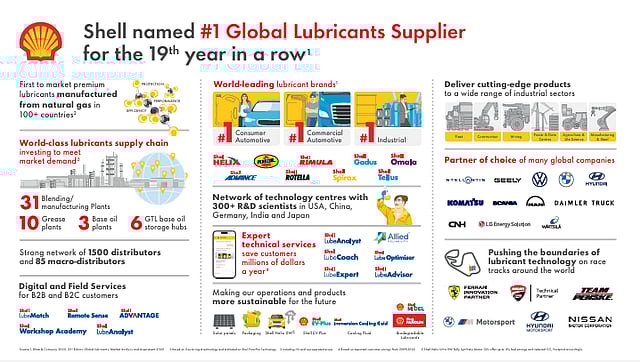 Kline ranks Shell as the #1 global lubricants supplier based on finished lubricants sales volumes across automotive and industrial segments worldwide.