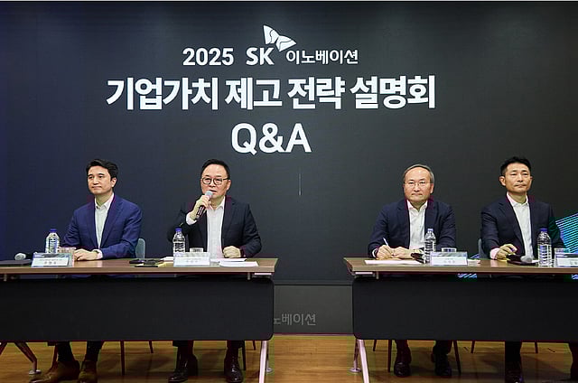 Executive President of SK Innovation, Jang Yong-ho, along with SK On CEO Lee Seok-hee, held a strategy briefing on enhancing corporate value at SK Seorin Building in Jongno-gu, Seoul.